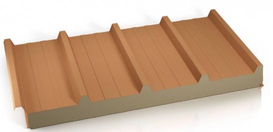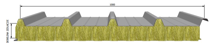 MONTERM TW5 strešni protipožarni izolacijski panel, ki je sestavljen iz zunanje in notranje pocinkane in obarvane pločevine ter z vmesnim slojem mineralne volne različnih debelin, gostote100 kg/m3.